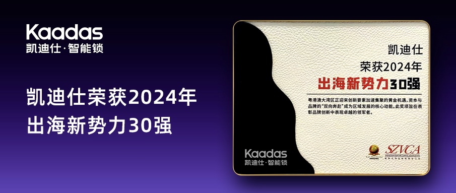 凱迪仕智能鎖榮獲“2024年出海新勢力30強”,以創新科技領航全球化征程!