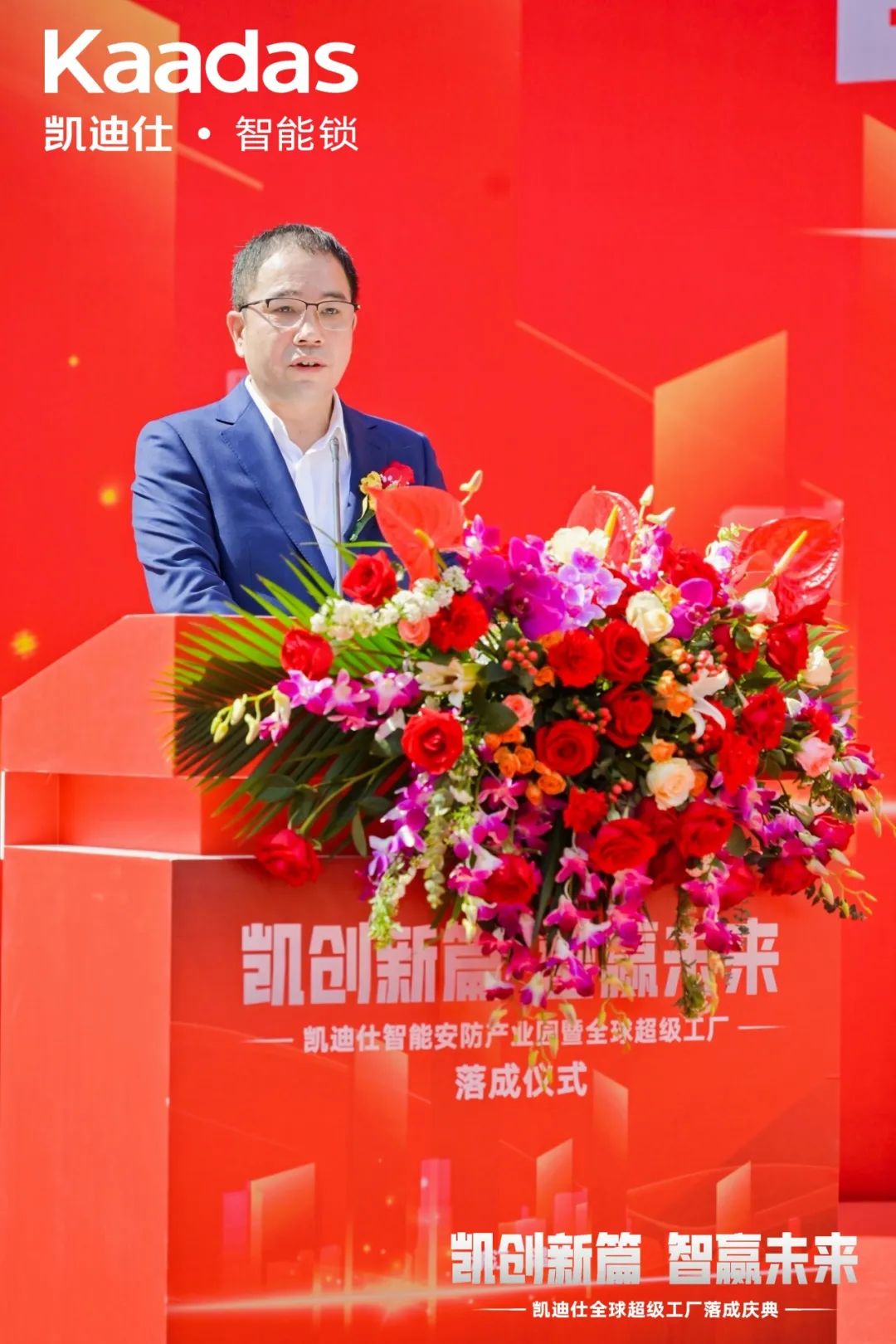 活動伊始,Kaadas凱迪仕品牌創(chuàng)始人、集團總裁蘇志勇先生代表致辭,對各位來賓表示熱烈歡迎和誠摯感謝。在致辭中,蘇總回顧了凱迪仕的發(fā)展歷程,并展望了未來的宏偉藍圖。他強調(diào),凱迪仕全球超級工廠的落成標示著凱迪仕在中國智能鎖制造領(lǐng)域的新跨越和新突破,它將以全球先進的制造工藝、頂級的生產(chǎn)材料、領(lǐng)先的智能化生產(chǎn)線,借鑒工業(yè)4.0智能制造理念,打造“全球最大智能安防科技產(chǎn)業(yè)園”,在新質(zhì)生產(chǎn)力的核心思想和發(fā)展要求的指導(dǎo)下,實現(xiàn)高科技、高效能、高質(zhì)量發(fā)展。