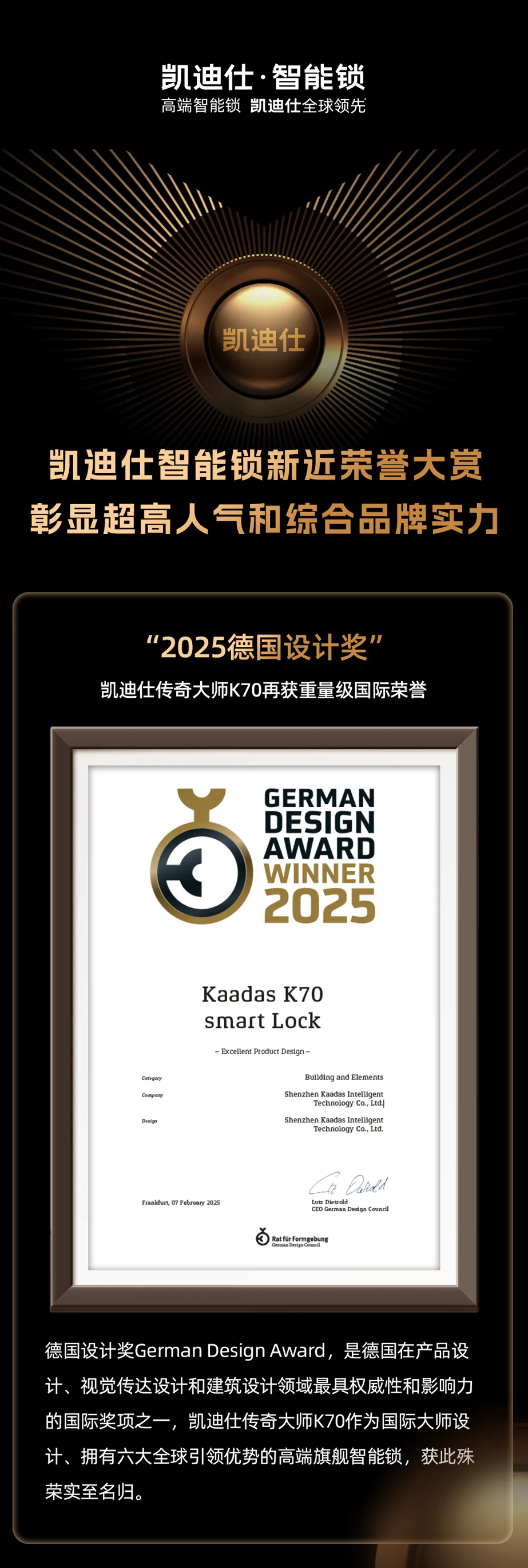 凱迪仕智能鎖新近榮譽大賞,彰顯超高人氣和綜合品牌實力!
