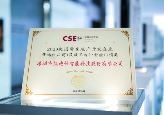 位列第一!Kaadas凱迪仕智能鎖榮獲“2023央國資房地產開發企業優選供應商(民族品牌)”稱號!