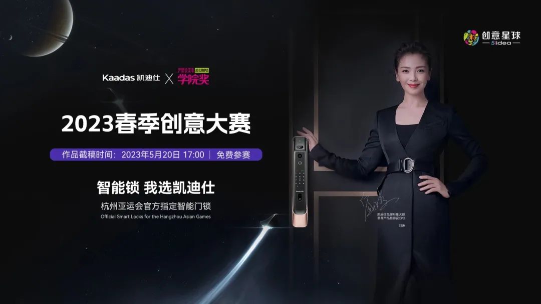 作為智能鎖行業首個且唯一一個攜手學院獎的品牌,凱迪仕以“凱迪仕千里眼 一眼鎖定你”為創作主題,開辟5大賽道,面向全國1830所高校發起創意征集活動。